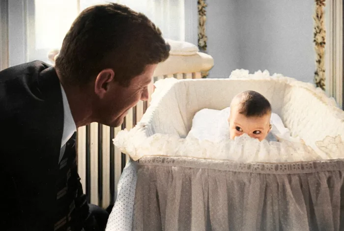 Джон Кеннеди играет в прятки со своей дочерью Керролайн, 1958 год.