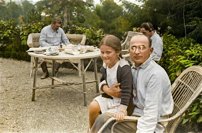 Сталин, его дочь Светлана и Лаврентий Берия на подмосковной даче, 1935 год.