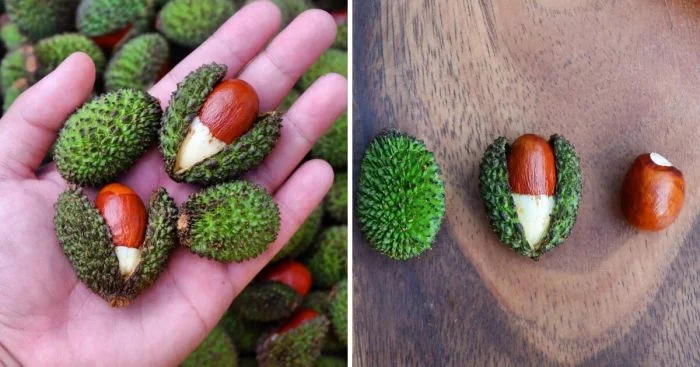 Фрукт, напоминающий каштан, но близкий по родству к личи. Его семена можно варить или жарить, и они напоминают вкус сладкого картофеля.