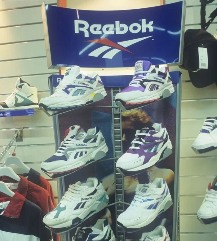 Кроссовки от фирмы «Reebok» в фирменном магазине Москвы, 1994 год.