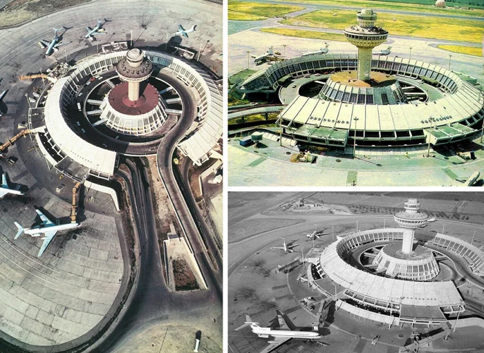 Проект аэропорта был инновационным, а вся грациозность задумки конструкторов и архитекторов раскрывается при взгляде на аэропорт с воздуха — кольцевидная структура терминала обеспечивала прекрасную логистику, путь трапа самолёта до автобусов составлял всего два десятка метров. Пользоваться аэропортом было очень удобно.