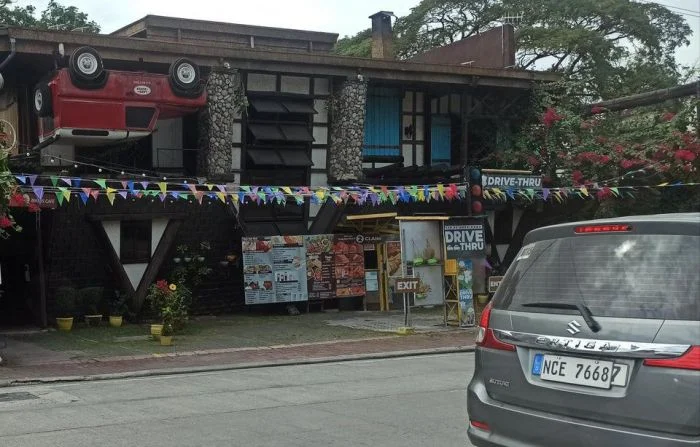 Проходил мимо ресторана и увидел, что в качестве декора они используют перевёрнутую машину