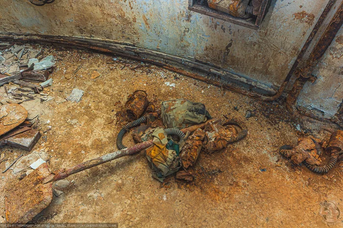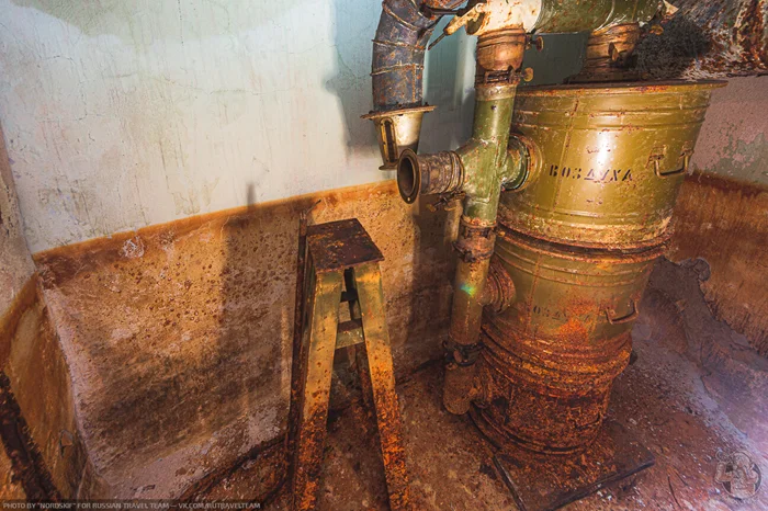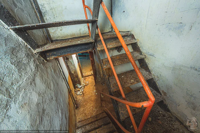 Окрашенные в коричневый цвет стены на самом деле ничто иное, как следы ржавчины. Это заброшенное убежище некоторое время стояло затопленным, и ржавые воды остались «краской» на его стенах…