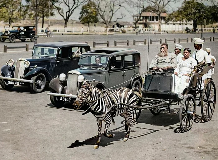 Повозка с зеброй в Калькутте (Индия), 1930-е годы.