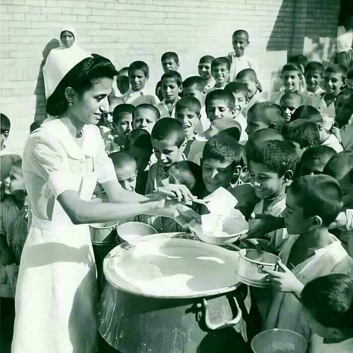 12. Бесплатный обед раздают школьникам Ахваза, Иран, 1970-е годы
