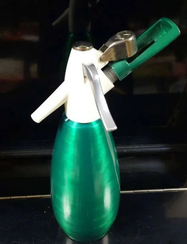 С помощью такого сифона можно было сделать газировку прямо дома! К емкости присоединялся баллончик с углекислым газом, а были и модели, которые заправлялись только в специальных заправочных пунктах. Но результат был один — домашняя газированная вода!