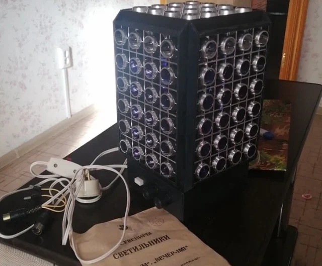 С таким светильником дома можно было устроить настоящую светомузыку. Внутри у него была установлена специальная разноцветная колба, которая раскручивалась, когда воздух нагревался от лампочки и по комнате начинали «бегать» цветные огоньки.