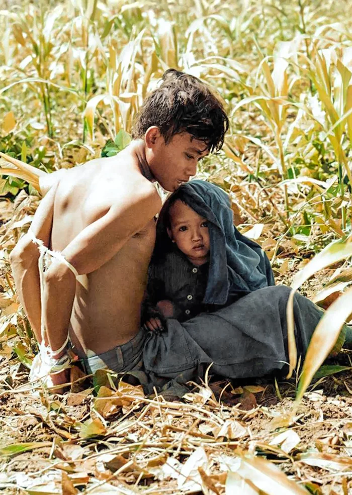 Вьетнамский ребенок и его отец, который был обвинен в содействии партизанам Северного Вьетнама, 1966 год.