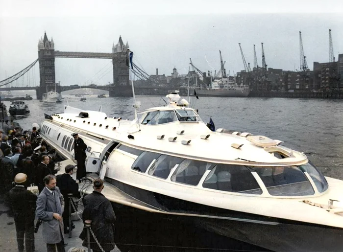 Советский 100-местный теплоход на подводных крыльях «Ракета» прибыл сегодня в Тауэрский пирс на Темзе. Теперь лондонцы смогут совершить поездку по Темзе за £1 с человека.