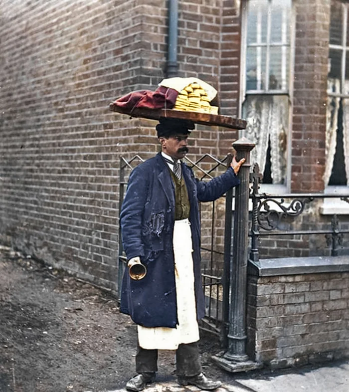 Продавщица жареных каштанов в Сохо, Лондон, Великобритания, 1935 год.