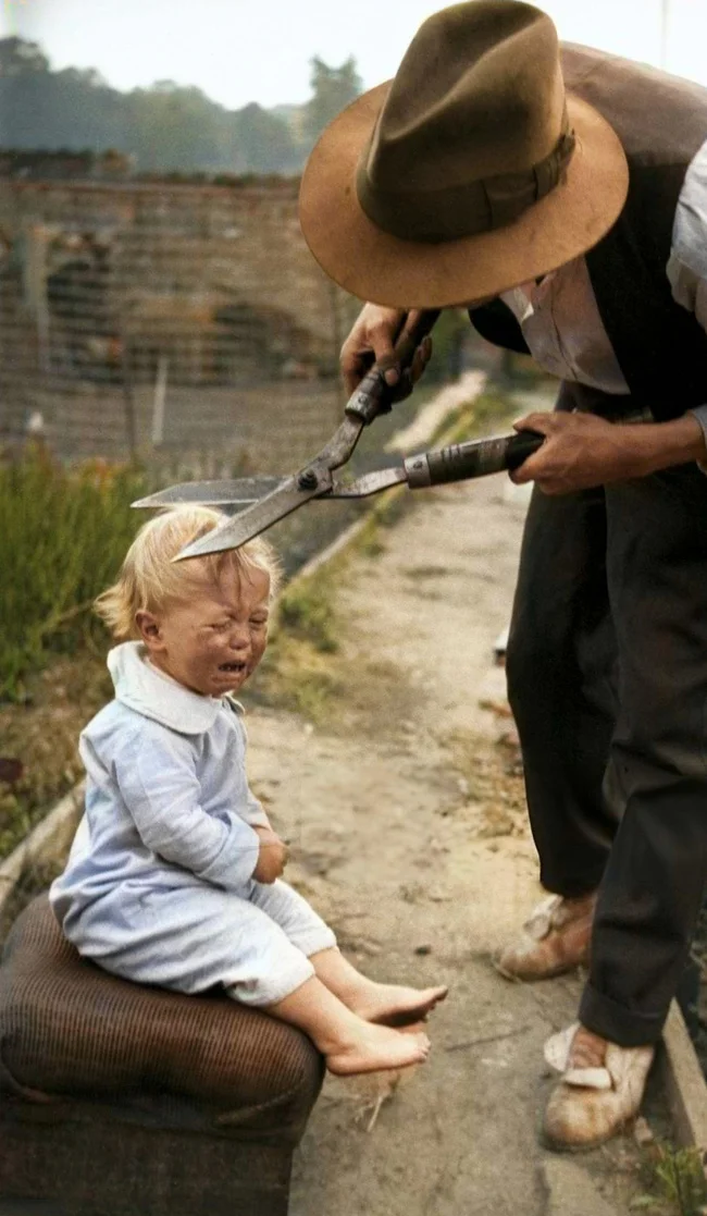 Стрижка садовыми ножницами, Великобритания, 1920 год.