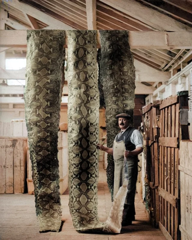 Сушка шкур на складе в порту Лондона, 1930 год.