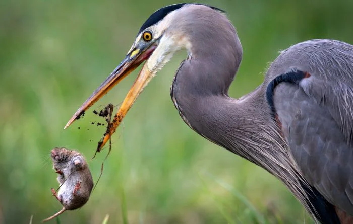 Большая голубая цапля во время охоты на северо-западе США