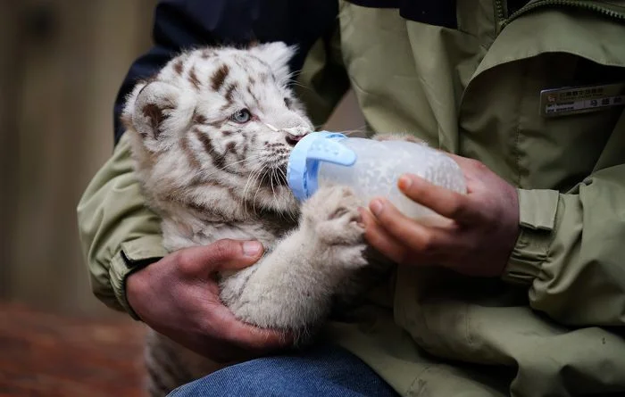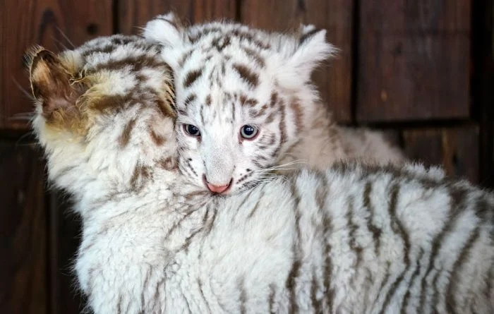 Детенышей белого бенгальского тигра впервые показали публике в Куньмине