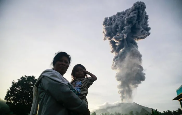 Извержение вулкана Ибу в Индонезии