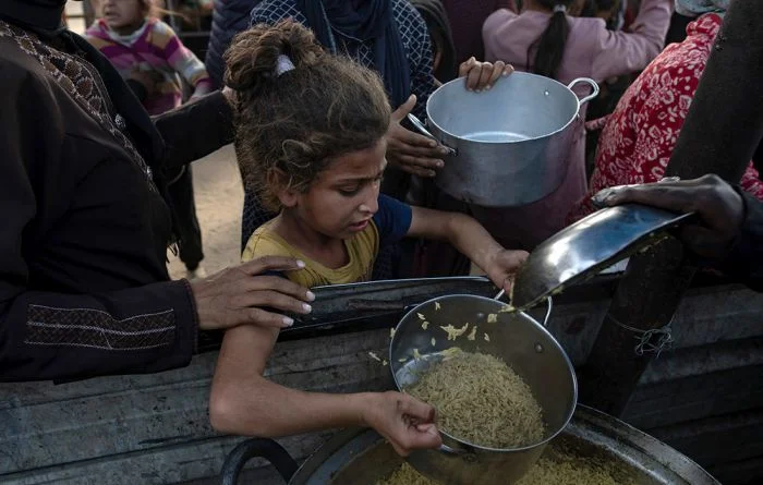 Раздача еды в лагере беженцев в Хан-Юнисе на юге сектора Газа