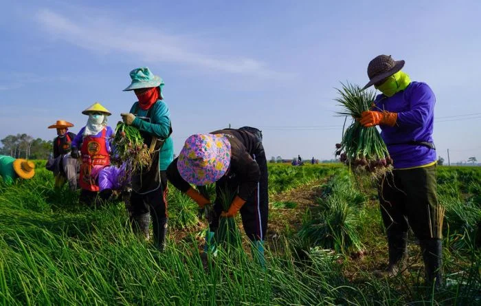 Сбор урожая лука-шалота в тайском Сисакете
