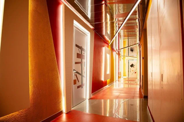 В Москве скоро откроет свои двери для жильцов такой вот ЖК, где пестрые коридоры, глянцевый потолок и золотой багет.
