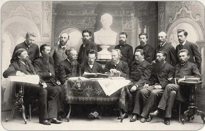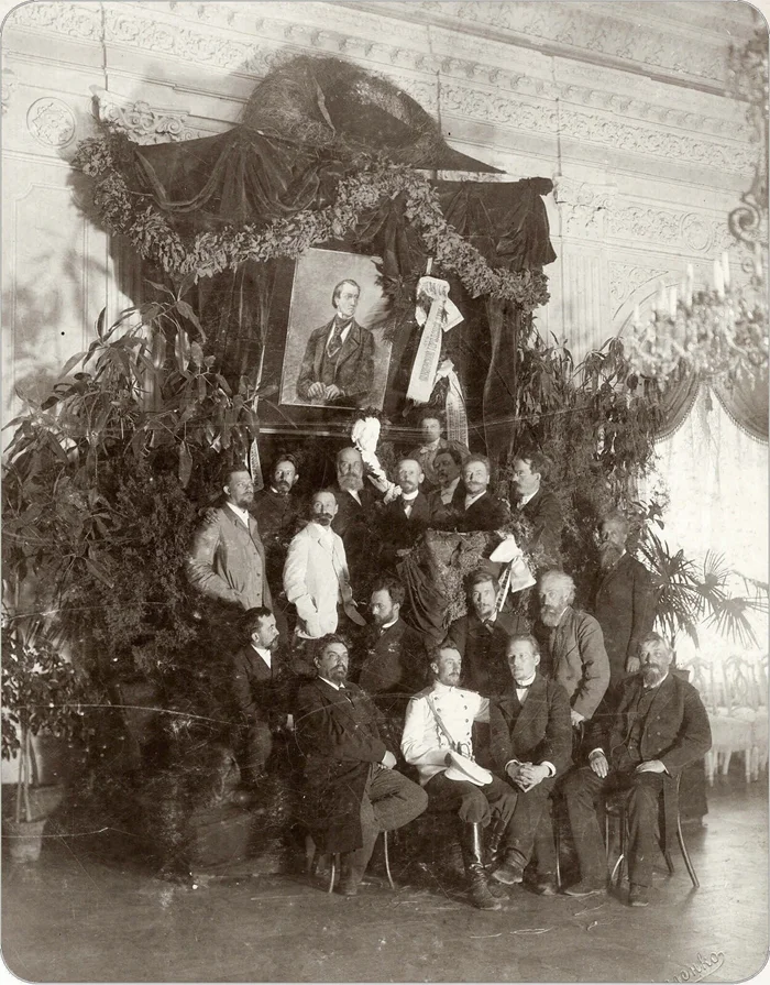 Гости юбилейного заседания в парадном зале дворянского собрания. 50-летие со дня смерти Белинского. Май 1899
