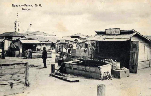 Из воспоминаний Ф. Ф. Вигеля: «Внизу под горой, на которой построена Пенза, в малонаселенной части её, среди довольно обширной площади, стоит церковь апостолов Петра и Павла. В день праздника сих святых, вокруг церкви собирался народ и происходил торг. Но как жители, покупатели, купцы и товары размножились и стало тесно, то и перенесли лавки немного поодаль, на пространное поле, которое тоже получило название площади, потому что окраено едва виднеющимися лачужками.