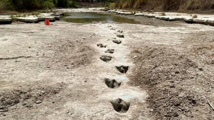 7. Следы динозавра, обнаруженные во время засухи в Долине динозавров в Техасе