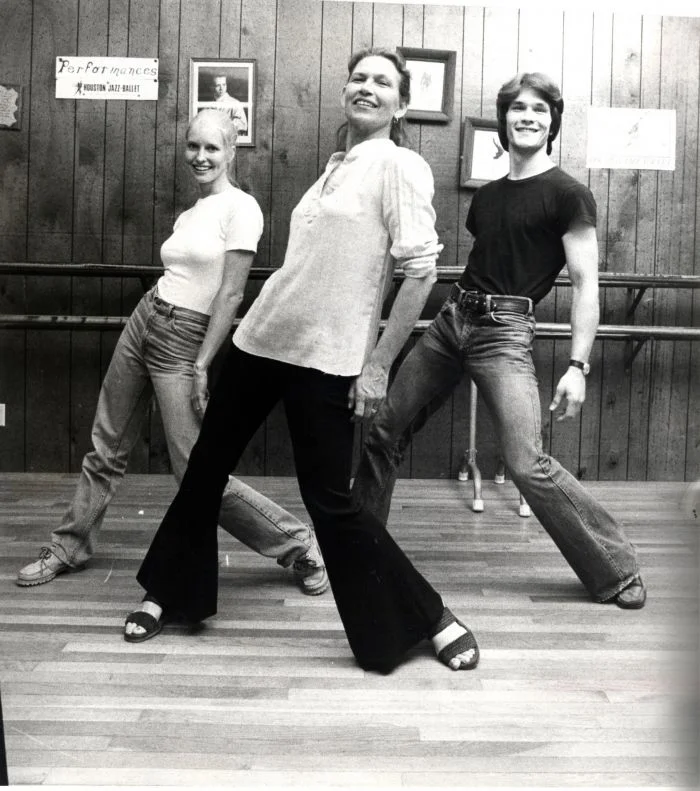 4. Учитель танцев Пэтси Суэйзи (в центре) со своей невесткой Лизой Ниеми и сыном Патриком Суэйзи, 1978 год