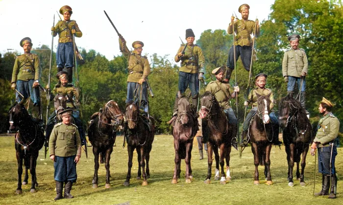 Донские казаки показывают свою физическую подготовку, 1910 год.