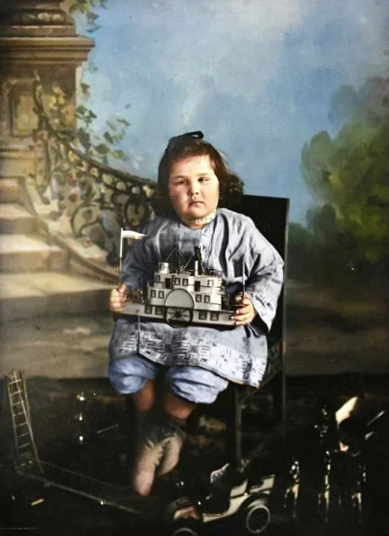 Портрет девочки с игрушечным корабликом в руках. Российская империя, 1910-е.