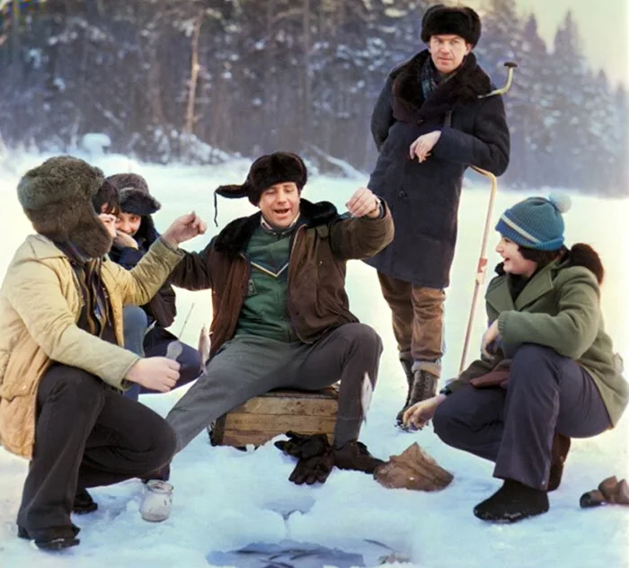 Командир космического корабля "Союз-32", подполковник Владимир Ляхов (в центре) и борт-инженер, летчик-космонавт СССР Валерий Рюмин (2 справа) на отдыхе в Подмосковье, 1979 год.