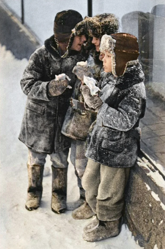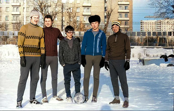 В то время у лыжниц не было никаких спортивных курток, они не надевали ватники и прочее, а именно так, в свитерах ехали на электричках на ближайший лыжный курорт, а потом уезжали также домой.