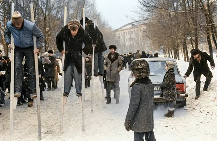 Ходули на Масленице. Новокузнецк, 1984 год.