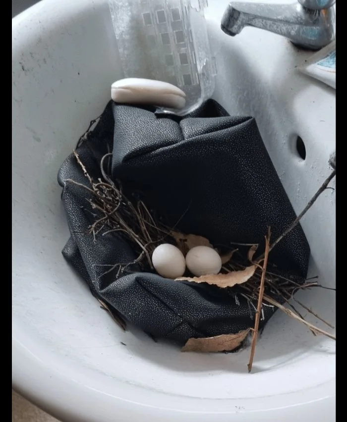 2. Я оставил окно ванной открытым на три недели, пока меня не было, птица сделала гнездо в моей раковине