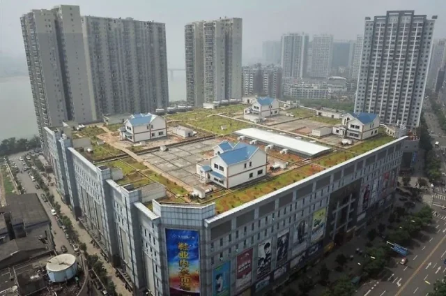 Частные дома на крыше восьмиэтажного торгового центра в Чжучжоу, Китай
