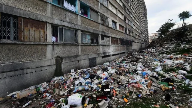 Впечатляющее количество грязи за кондоминиумом в Марселе, Франция