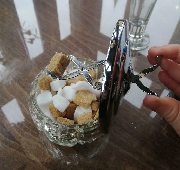 17. Винтажная сахарница со встроенными в крышку щипцами