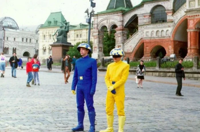 4. Группа «Pet Shop Boys» на съемках клипа на песню «Go west», 1993 год, Москва