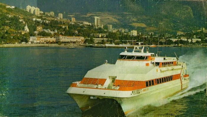 7. Катамаран "Крымская стрела" на фоне Ялты. 1994 год
