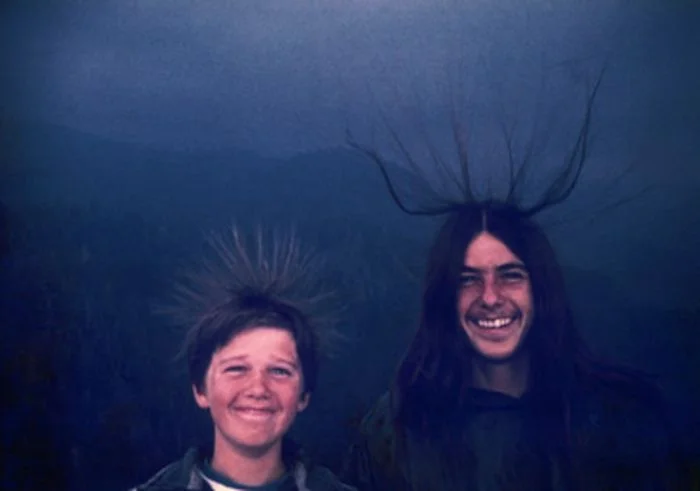 13. Братья позируют для фото в национальном парке Секвойя за несколько секунд до того, как в них ударит молния, август 1975 года