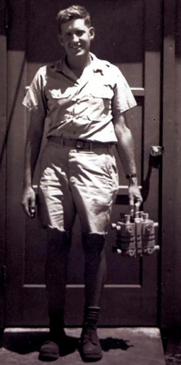 16. Гарольд Агнью с плутониевым ядром бомбы Толстяк, сброшенной на Нагасаки, 1945 год