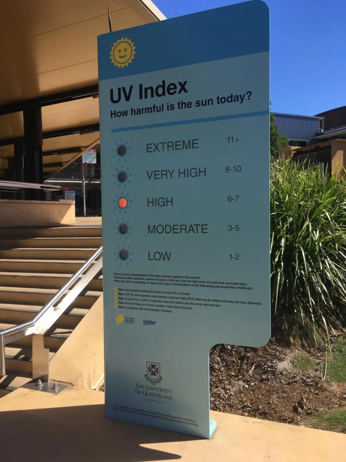 19. Табло, демонстрирующее уровень ультрафиолетового излучения