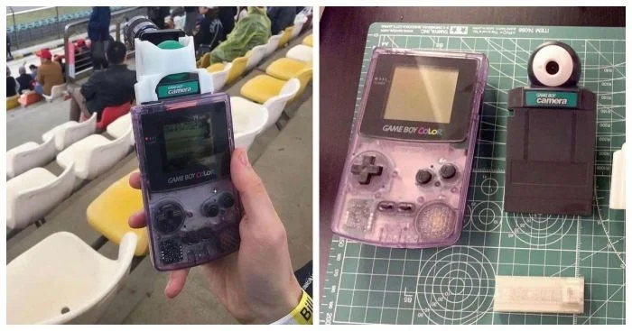Фотокамера для портативной консоли Game Boy продавалась с 1998 по 2002 год. Камера делала фотографии низкого разрешения в оттенках серого. Снимками можно было обмениваться между консолями, редактировать, использовать в играх в качестве аватаров. Камера крутилась на 180°, поэтому с её помощью можно было делать селфи. Снимки можно было печатать на термобумаге на специальном принтере для Game Boy.