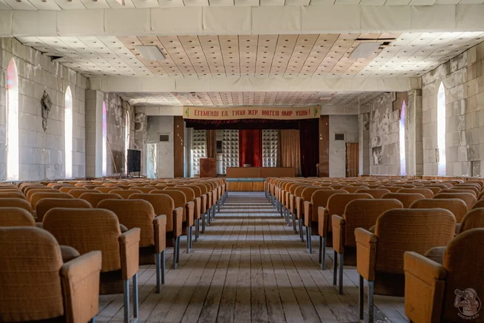 Огромный актовый зал сохранился практически идеально, где ещё такое встретишь? Конечно, годы запустения, мародёры и протекающая крыша не прошли для него совсем уж бесследно и всё же, постоянные читатели нашего канала знают, что обычно подобные места выглядят гораздо, гораздо хуже!