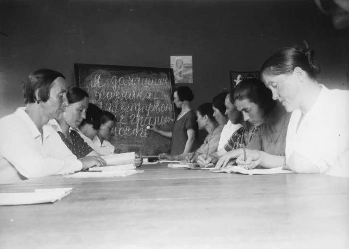 18. «А. И. Филиппова на занятиях в домовом клубе в кружке по ликвидации неграмотности среди домашних хозяек».
