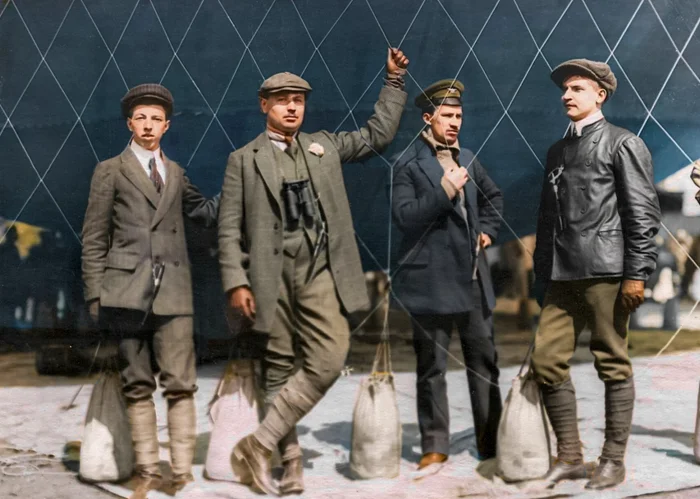 Воздухоплаватели у воздушного шара на Газовом заводе, 1910 год.