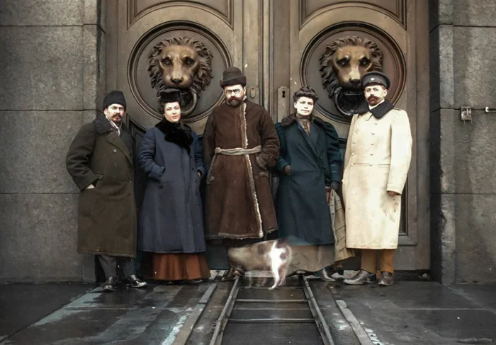 В центре Николай Михайлович Берестнев (1867—1910) — русский бактериолог, доктор биологических наук, заведующий противочумной лабораторией на форте Александр I. В светлой шинели Мануил Фёдорович Шрейбер (1866—1907) — российский военный врач, эпидемиолог, доктор медицины, жертва чумной пневмонии.