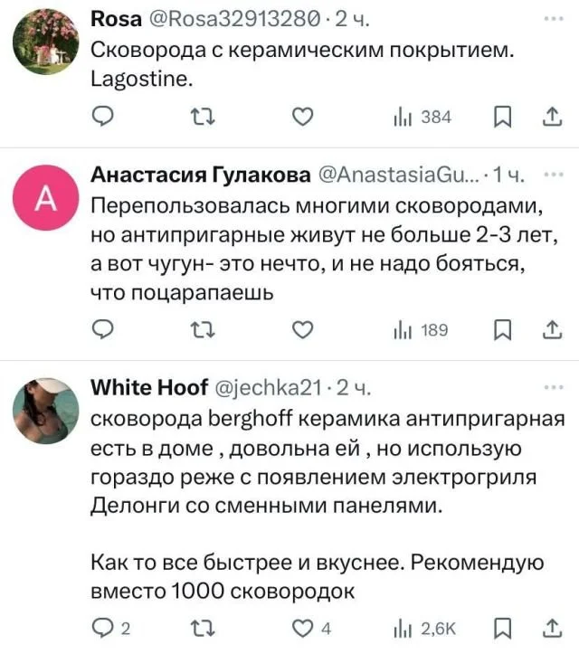 Обычно в твитах только хиханьки и хаханьки. Но порой народ там поднимает действительно серьезные и важные вопросы. Например, как выбрать самую лучшую сковороду! Народ поделился своим мнением и выдал немало годных вариантов. А какой сковородой пользуетесь вы?