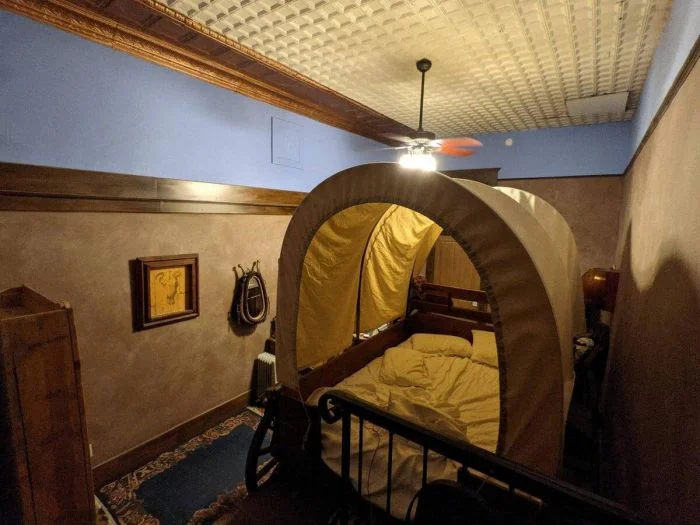 Кровать в этом отеле — крытая повозка