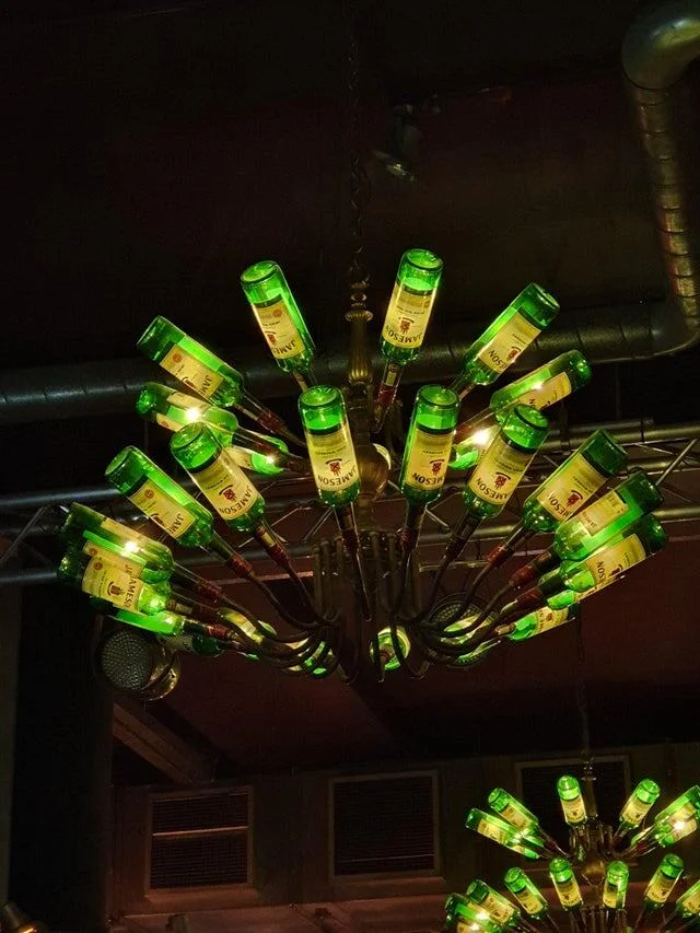 Хостел делает люстры из использованных бутылок