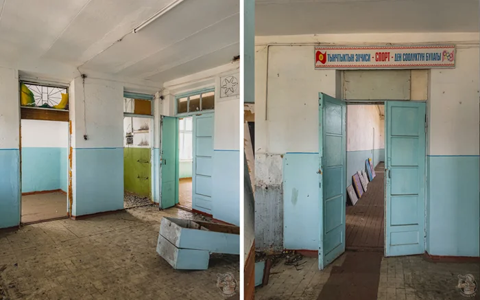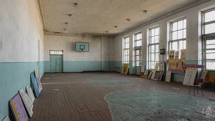Помещения бывших учебных заведений не балуют разнообразием: в основном учебные классы и кабинеты преподавателей, соединённые узкими коридорами. В дальнем углу здания притаилось фойе главного входа, актовый и спортивный залы, но до них мы доберёмся чуть позже.