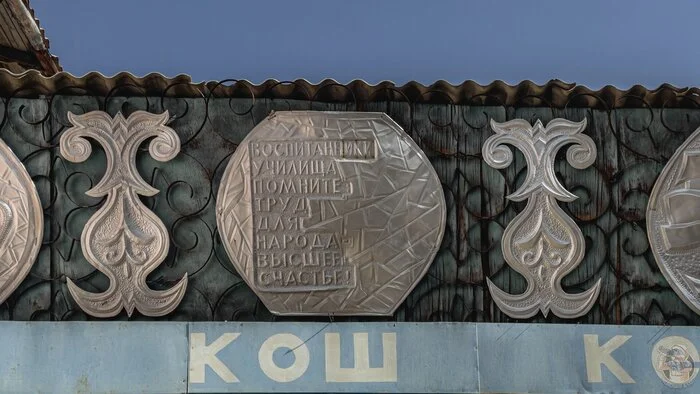 Завершаем осмотр здания подробными снимками чеканки над входом в здание. Таким изящным и недорогим способом украшали типовые советские проекты в условиях ограниченного бюджета, и, к сожалению, зачастую в подобных архитектурных элементах культурной ценности не видят, и они пропадают в ходе первой крупной реконструкции.